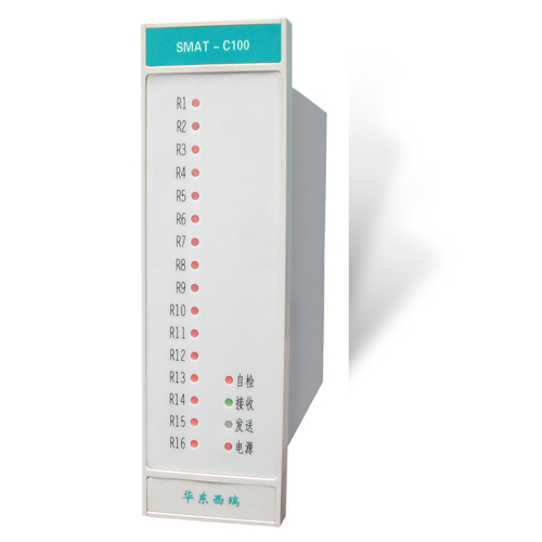 SMAT-C100开关量输出模块用于执行遥控输出命令(如遥控断路器的合分闸)。模块共有16通道继电器遥控输出,继电器触点容量为AC 220V、5A,各通道均有LED指示,装置本身具有自检功能,保证高可靠性。